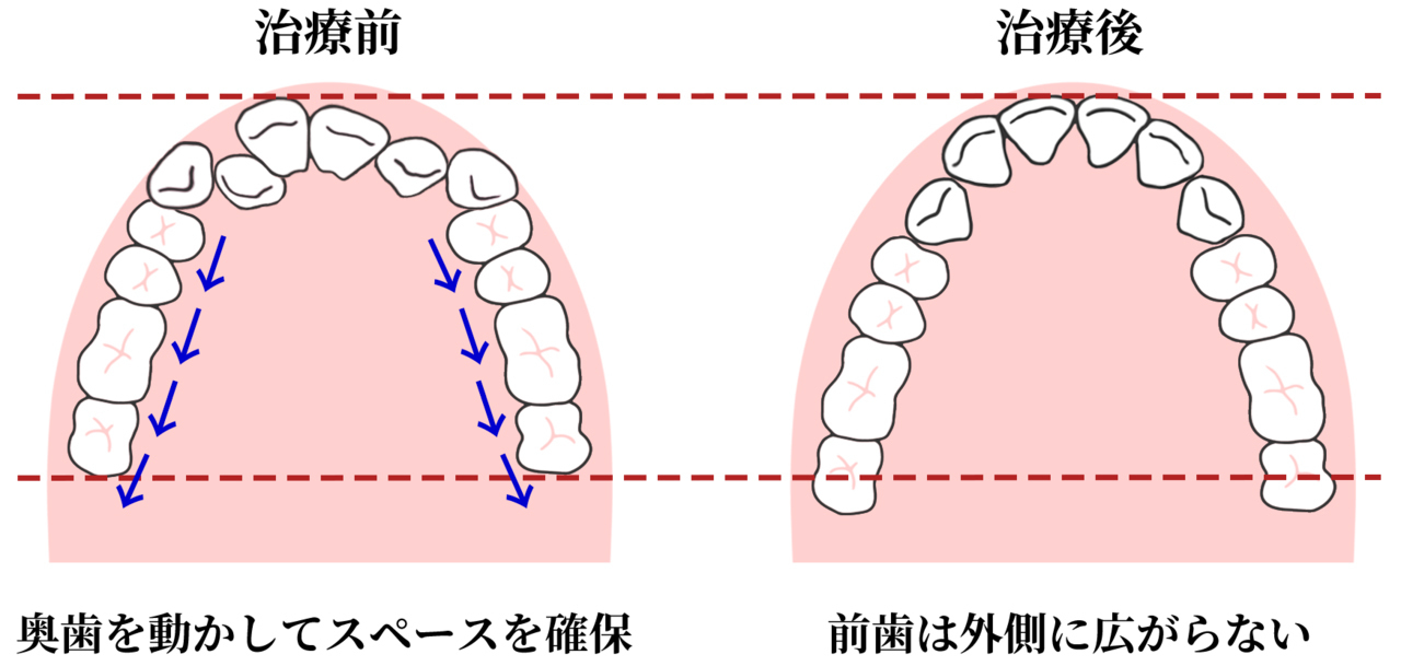 しかし小顔であごが小さいために歯並びが悪くなっている場合、前歯だけの矯正法では、治療後に出っ歯や口ゴボのになってしまう危険性があります。