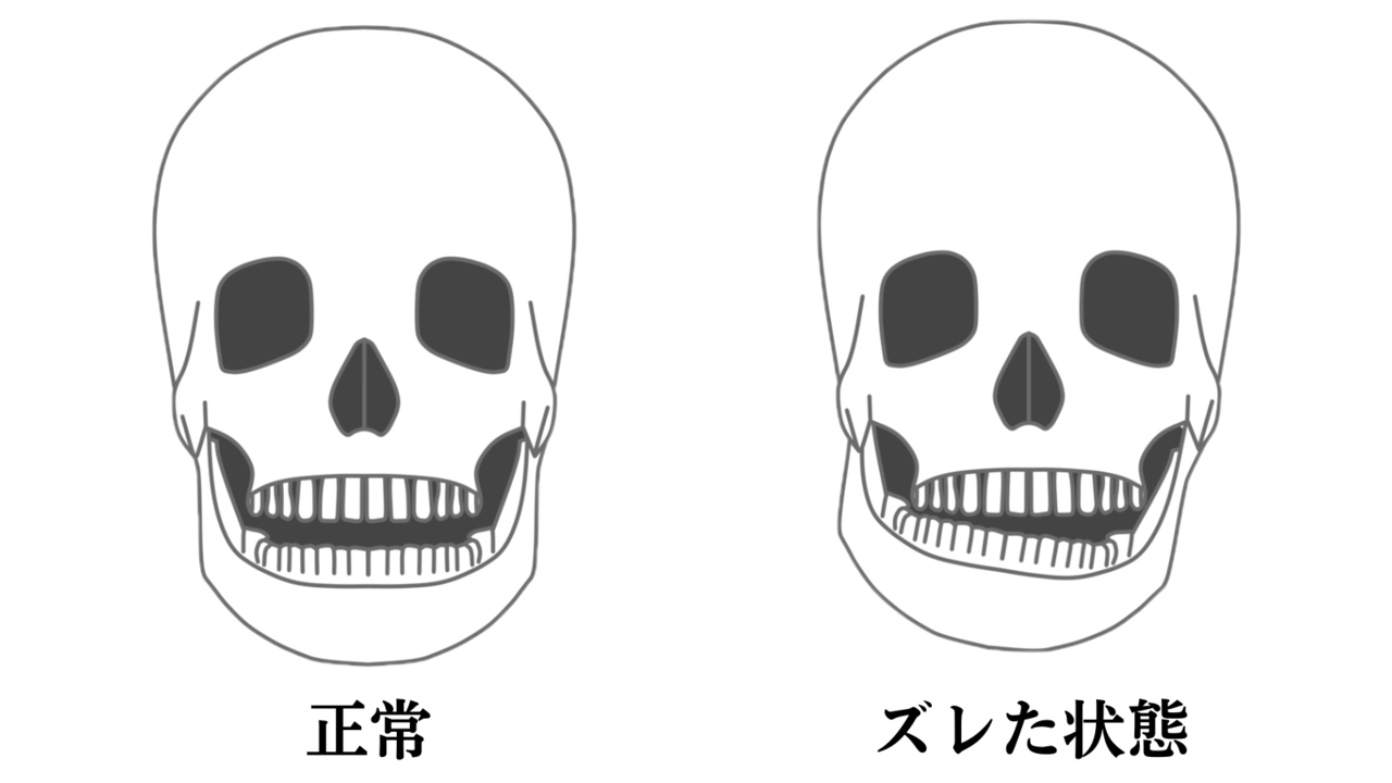 奥歯の噛み合わせが悪いと、上顎と下顎の骨の位置がズレます。