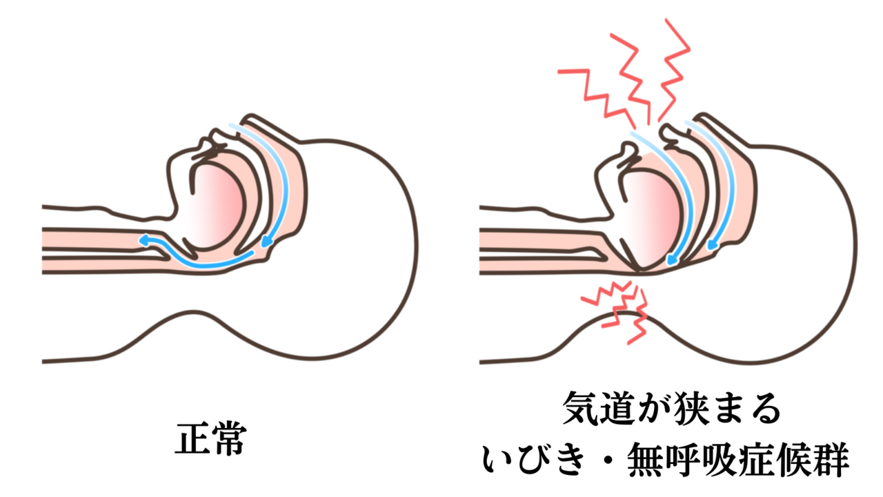 奥歯の噛み合わせが悪いために下あごが後退すると、気道が潰されて狭くなるために、いびきや睡眠時無呼吸症候群の原因になることがあります。